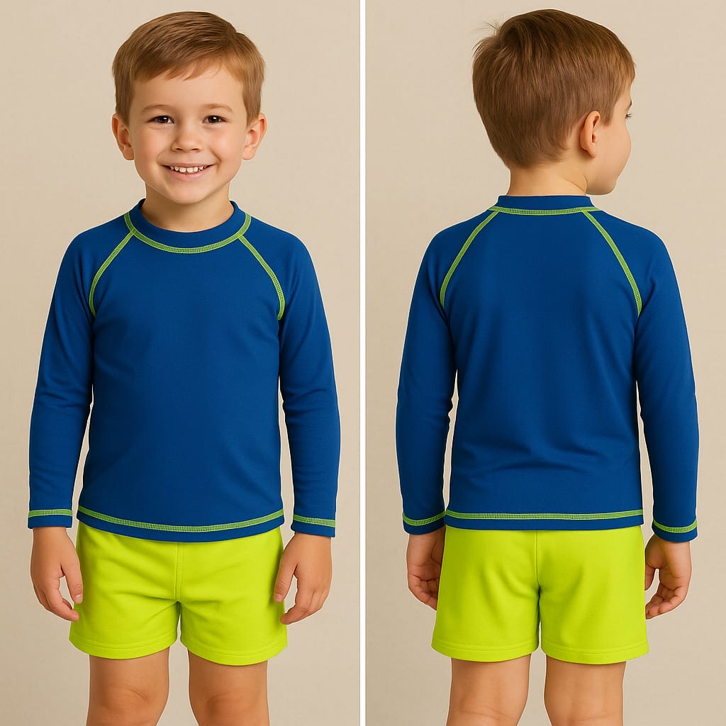 Conjunto camiseta e Sunga de proteção UV50+ Kit Praia menino infantil