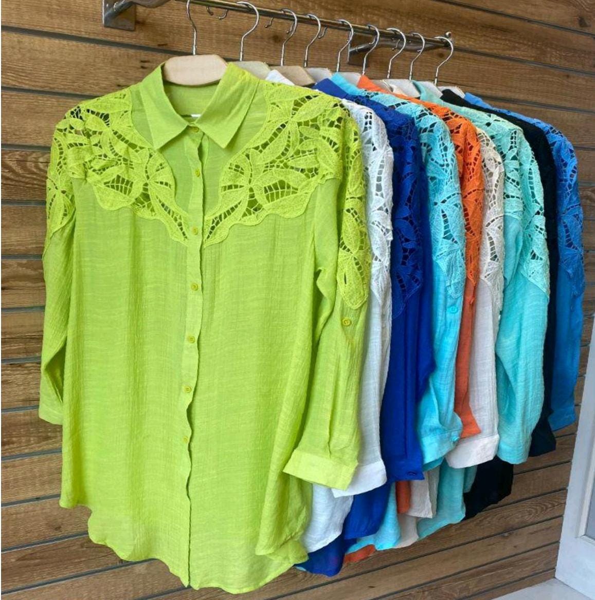 Chamise Saída de Praia Algodão Rendado Manga Longa