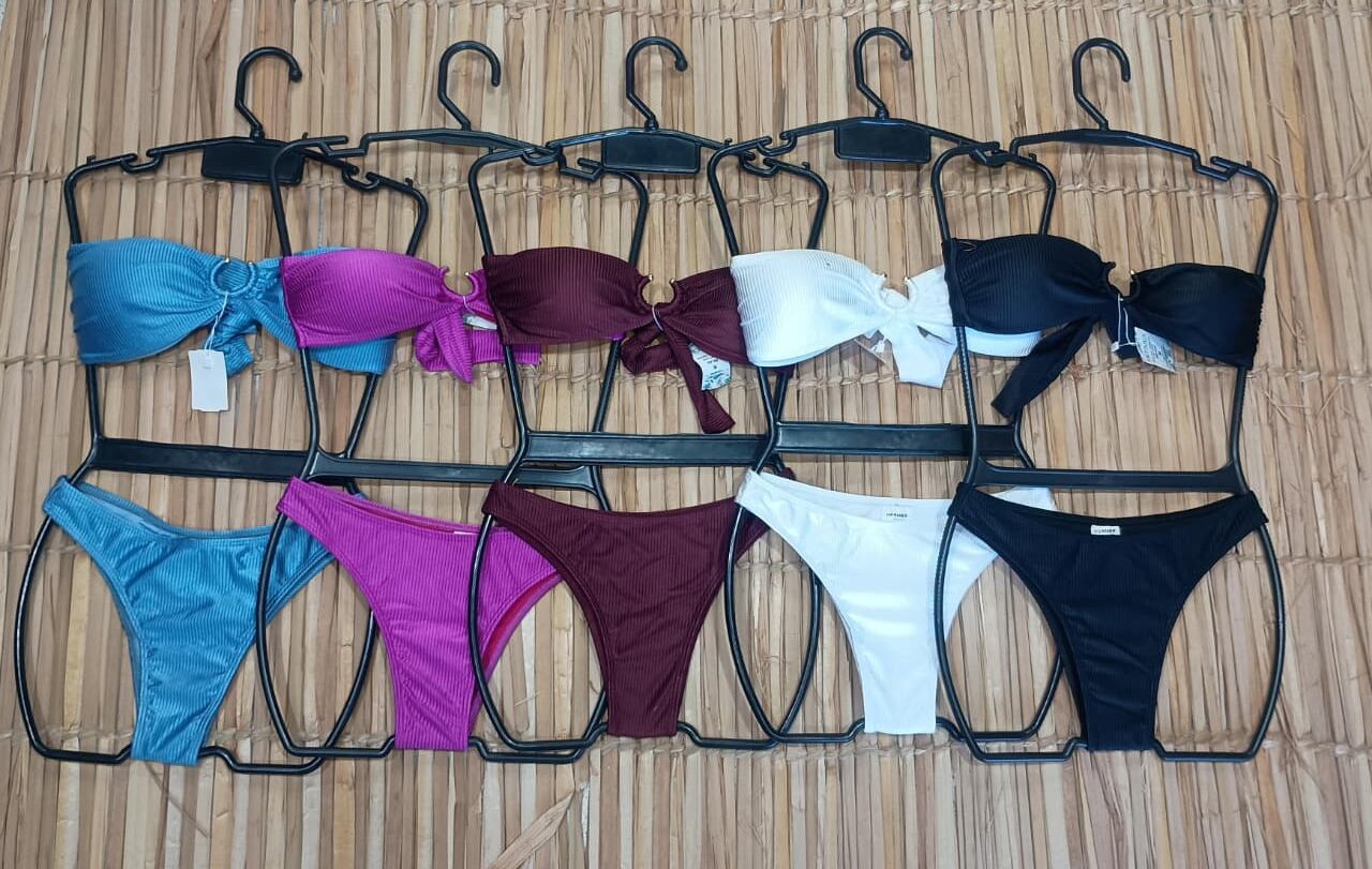 Conjunto Biquíni Tomara Que Caia Poliamida Canelado Tanga