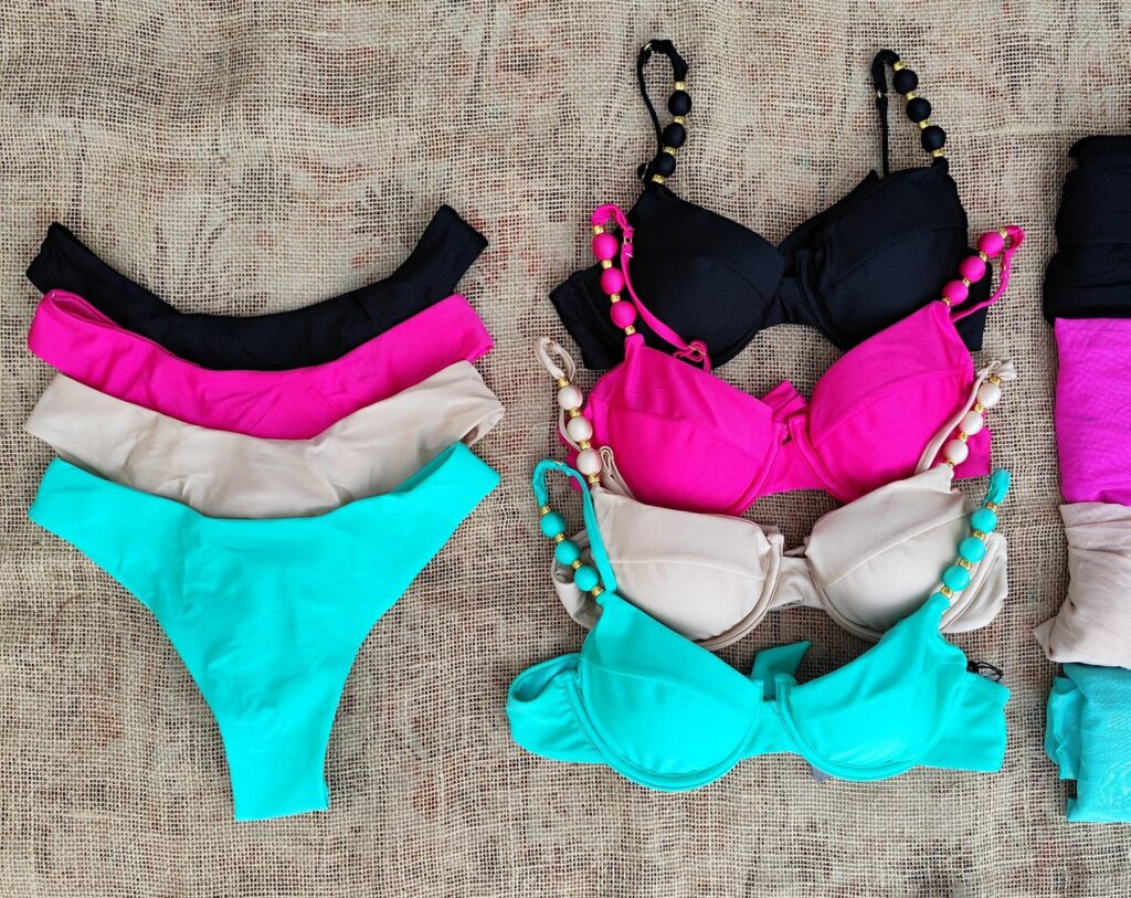 Trijuntos Biquíni Feminino Conjunto Meia Taça Fio Duplo com Saida Midi