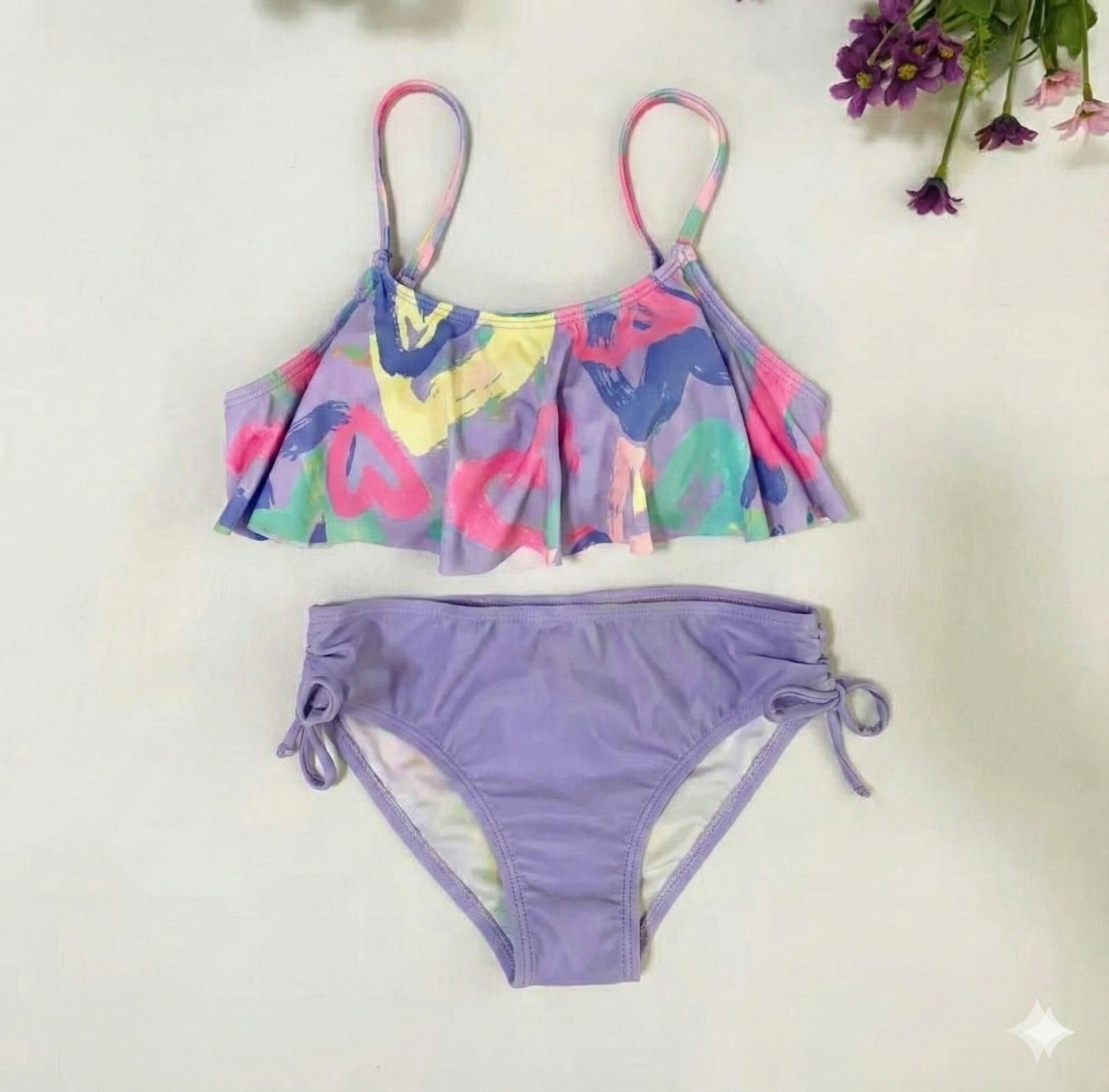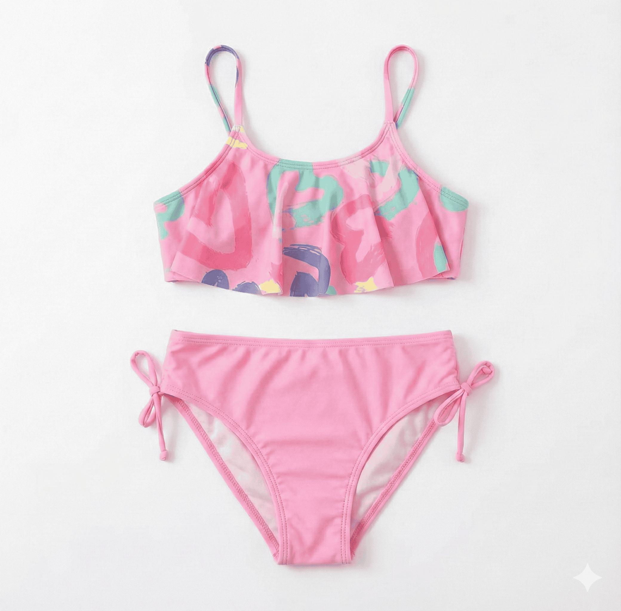 Conforto e proteção pensados para as pequenas aproveitarem o verão com segurança e estilo. O top cropped oferece sustentação leve e ajuste confortável, enquanto a calcinha modelo puxe garante praticidade e ótimo caimento. Confeccionado em Poliamida com Elastano, o conjunto tem toque macio e secagem rápida, ideal para brincadeiras à beira d’água. Acabamentos reforçados aumentam durabilidade e resistência ao cloro.